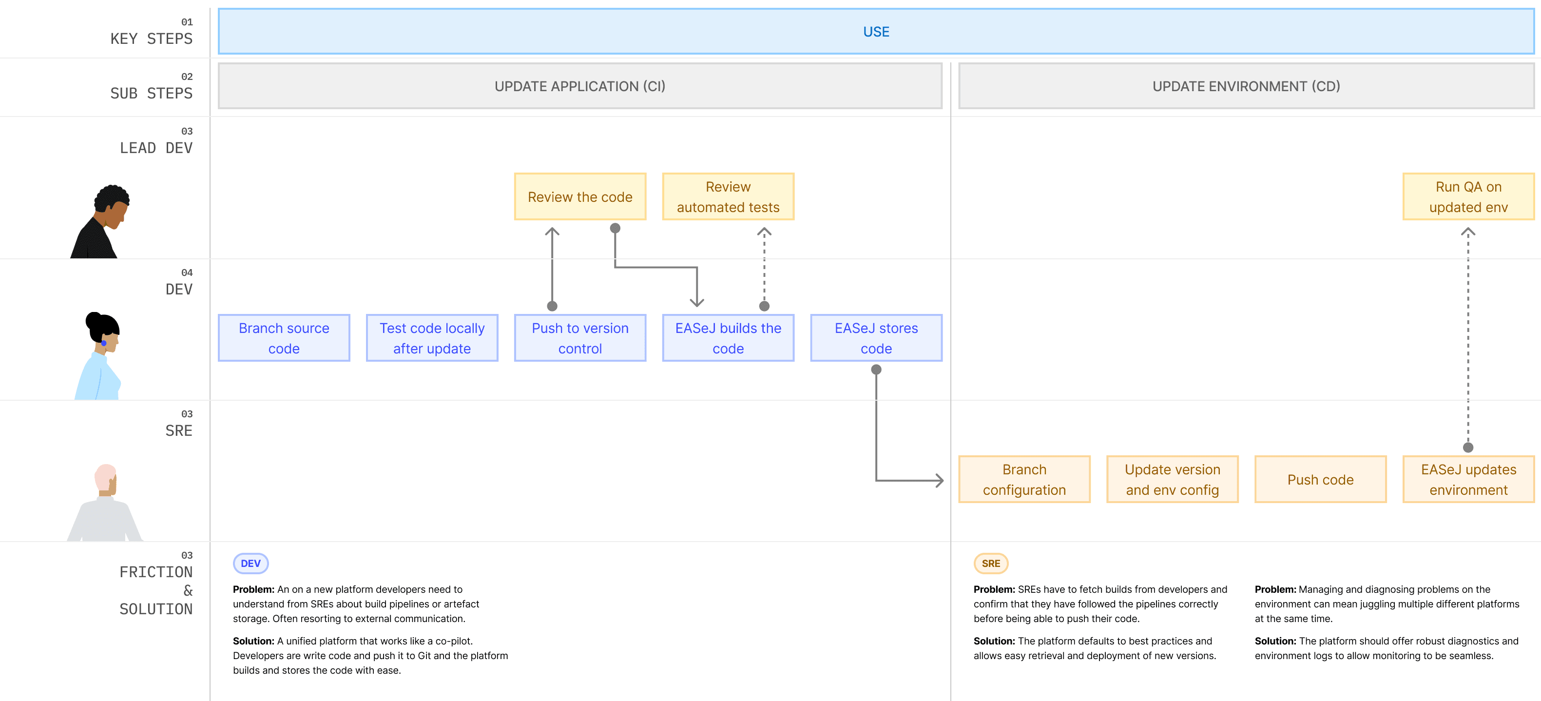 I mapped out the entire end-to-end journey to understand the friction areas faced by each user at each stage of application delivery from setup and onboarding to deployment and monitoring.